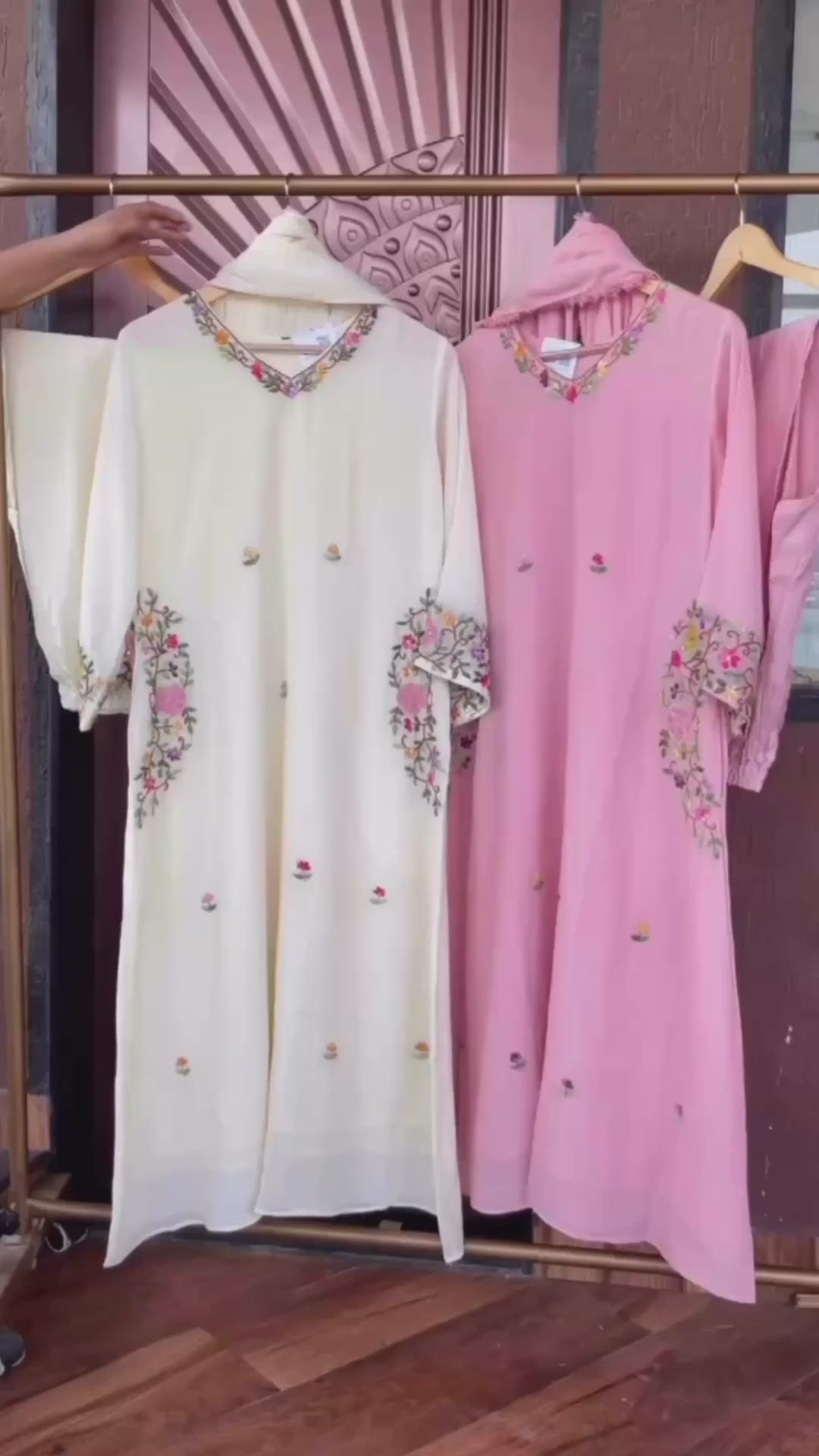 Kurta : Bell-sleeved Embroidered Mul Chanderi Suit Set (with lining)