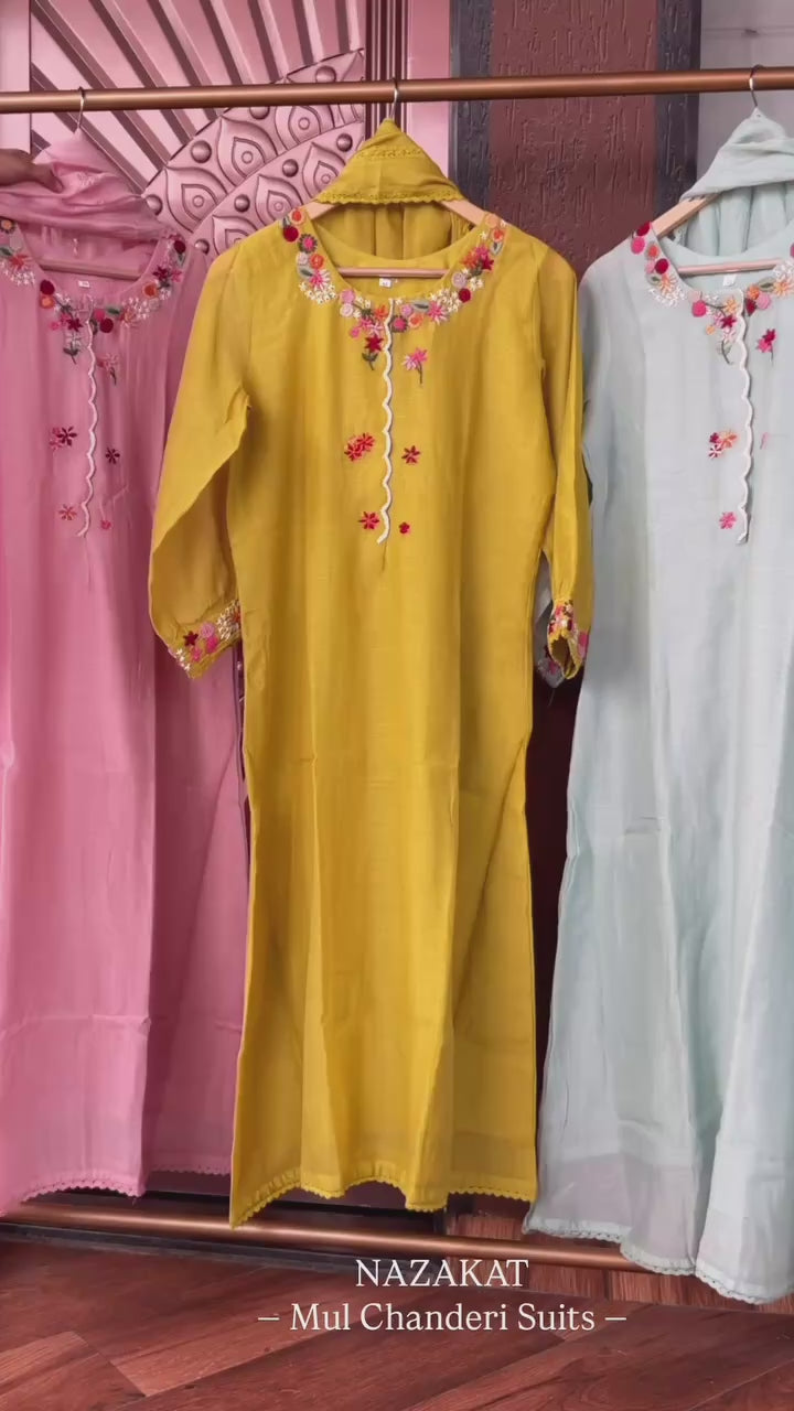 Mul Chanderi hand-embroidery suits