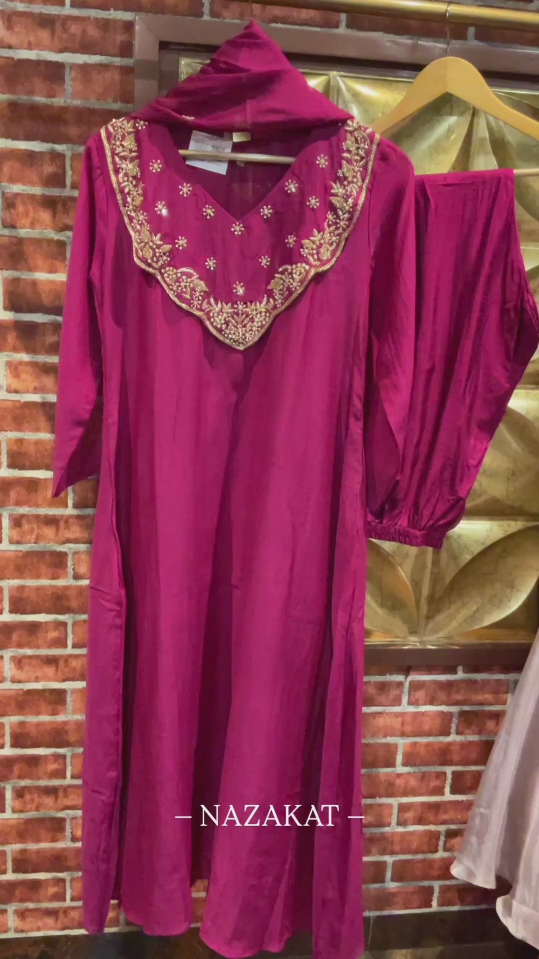 ✔ A-line kurta in soft Mul Chanderi fabric with exquisite handwork on the yoke (Length: 47–48 inches)