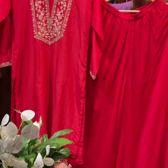 Mul Chanderi kurta with flary palazzo(plus size available)
