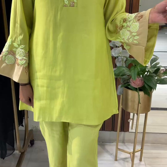 Two colors Bell sleeved Co-ord Set
