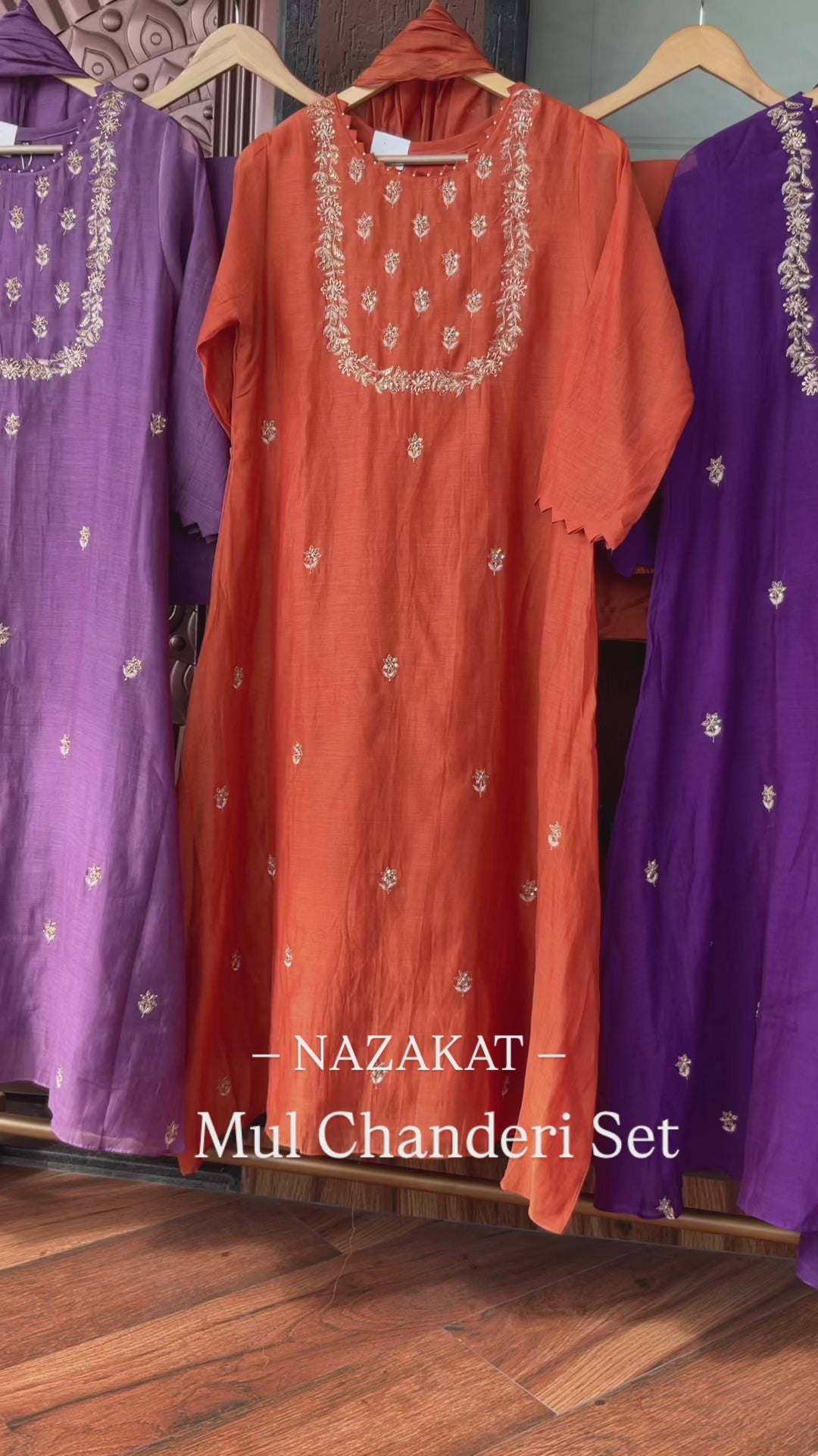 • Includes a Mul Chanderi kurta with cotton lining, cotton silk pants, and a half-width Mul Chanderi dupatta.