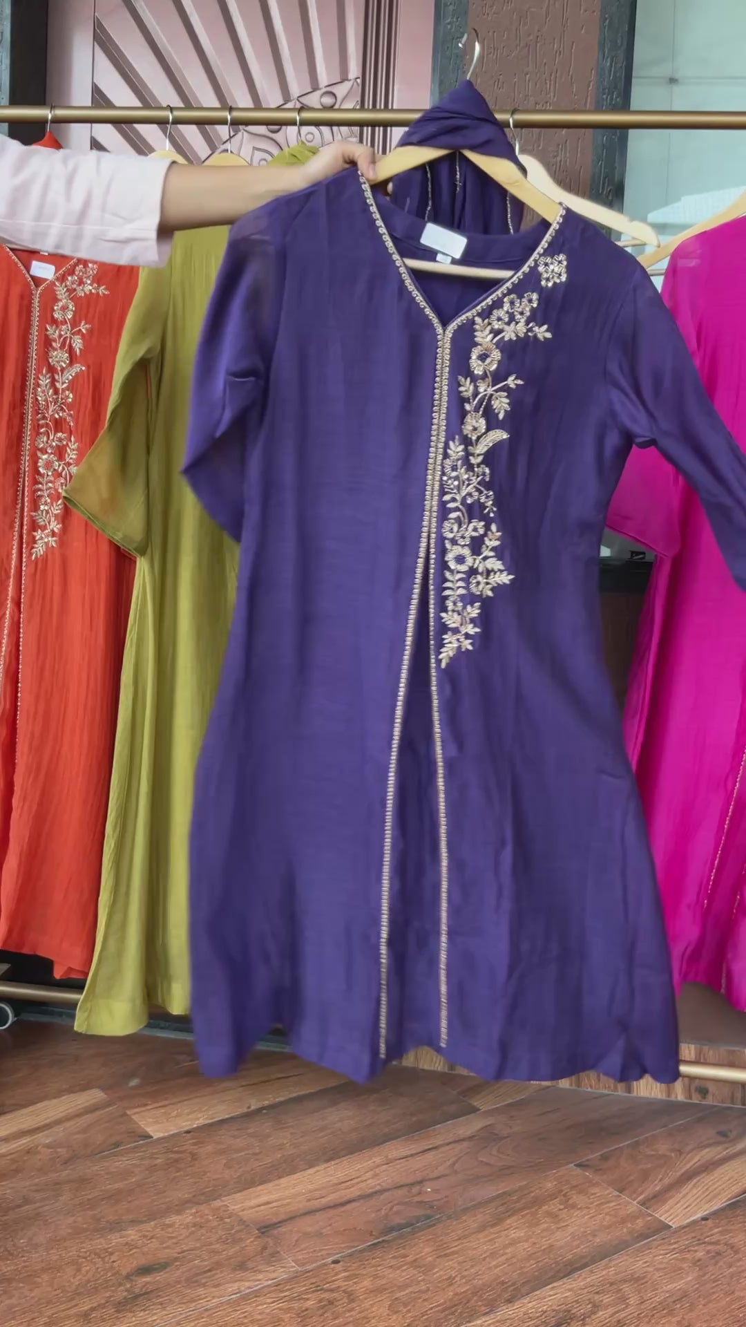 This set includes an A-line kurta, straight-fit pants, and a matching dupatta – all crafted from soft, breathable Mul Chanderi fabric with intricate detailing that adds a subtle touch of sophistication.