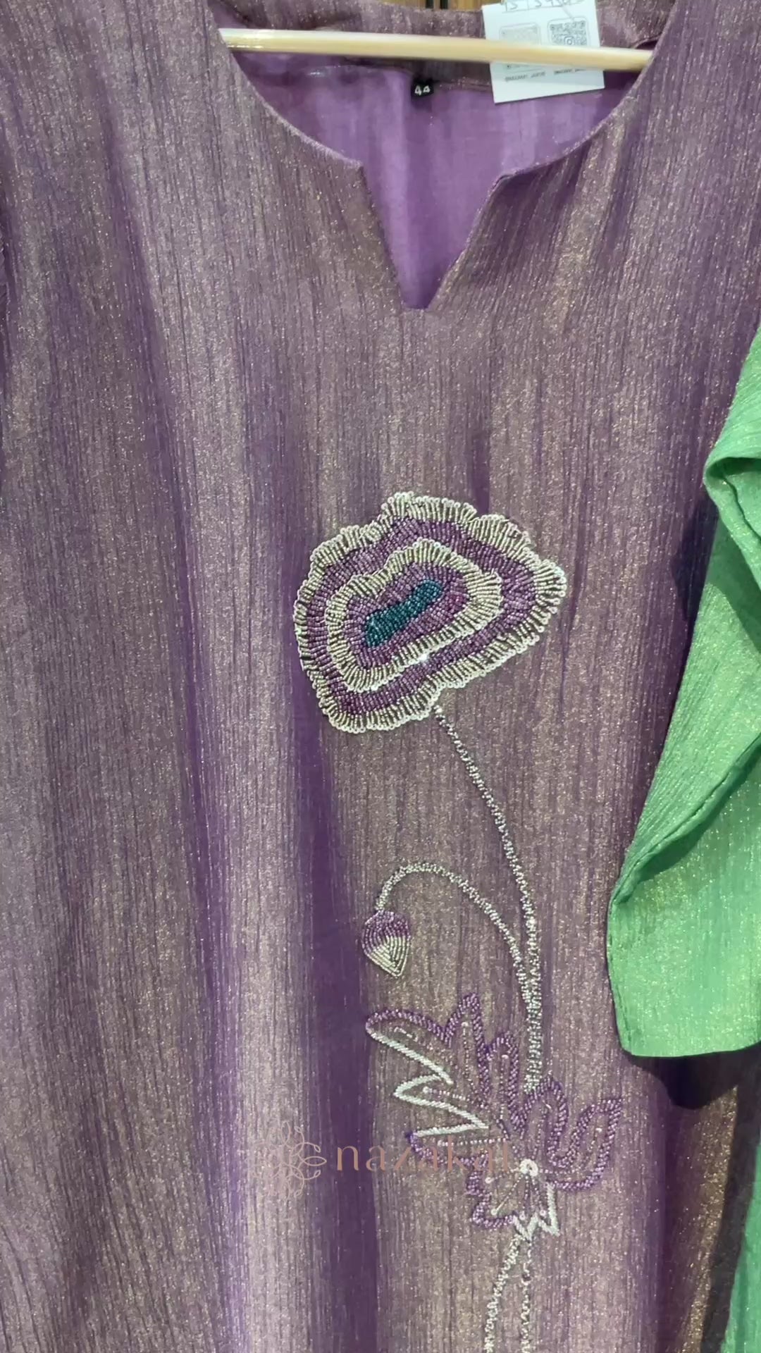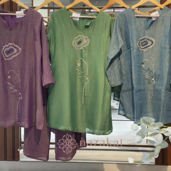 - Detailing: Elegant hand-embroidered floral motif with intricate bead on the front